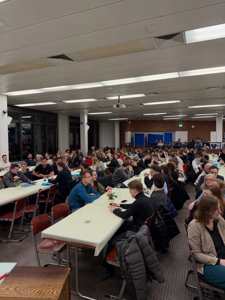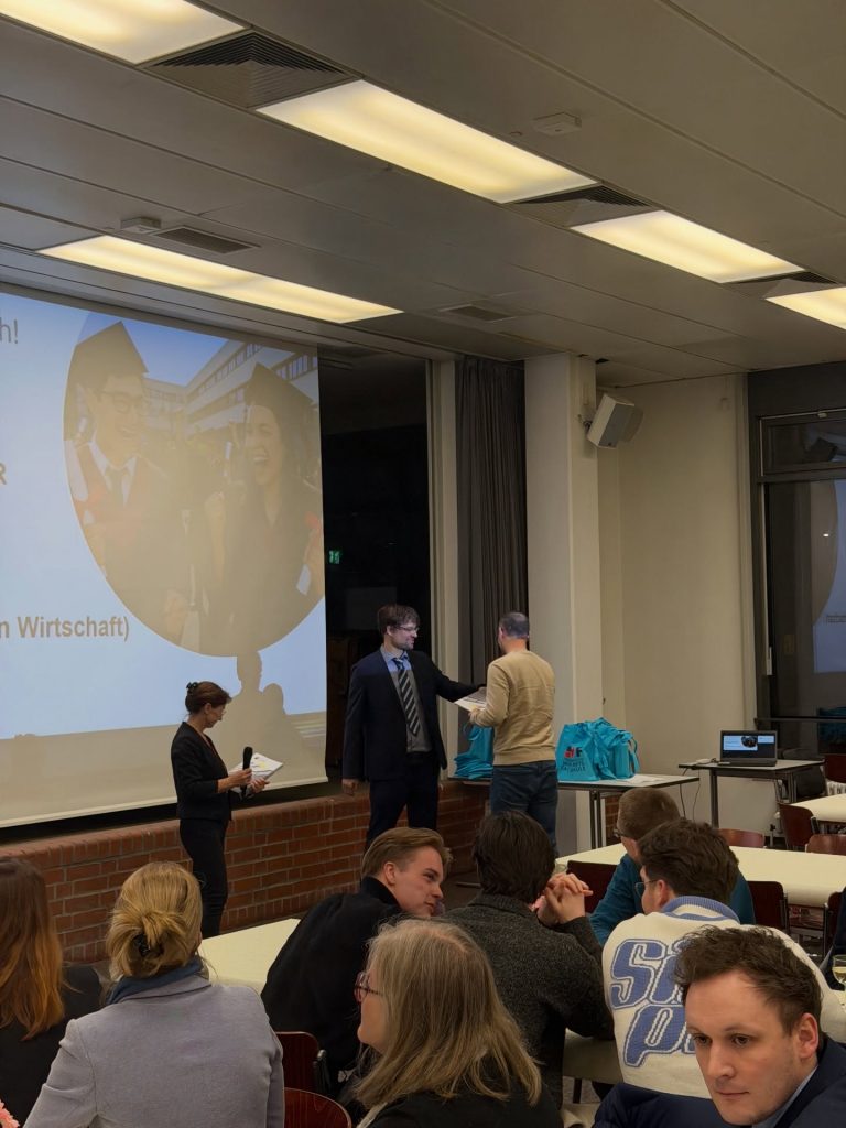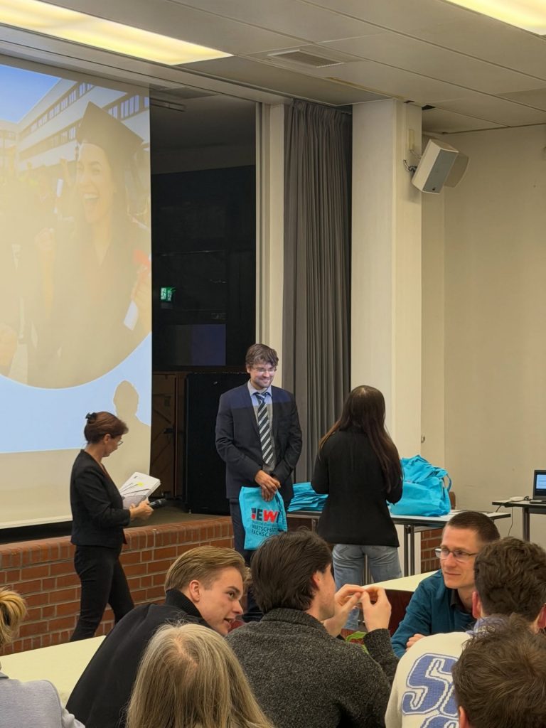 Die feierliche Zeugnisverleihung fand in diesem Jahr in der Mensa statt und wurde gemeinsam mit den Absolvent*innen der Banken-, Immobilien- und Versicherungsklassen begangen – ein besonderer Rahmen mit deutlich größerer Runde und toller Atmosphäre.