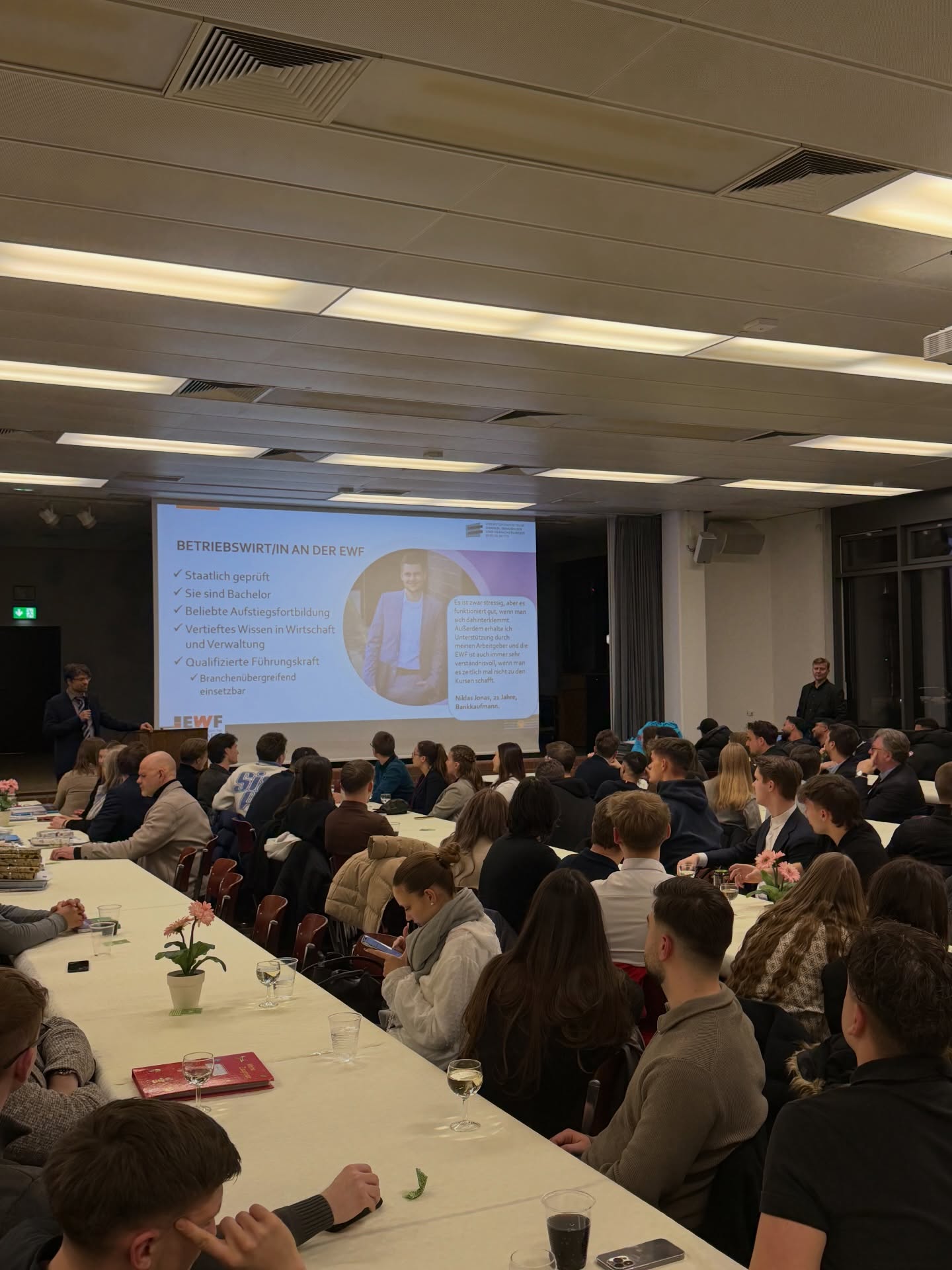 Die feierliche Zeugnisverleihung fand in diesem Jahr in der Mensa statt und wurde gemeinsam mit den Absolvent*innen der Banken-, Immobilien- und Versicherungsklassen begangen – ein besonderer Rahmen mit deutlich größerer Runde und toller Atmosphäre.